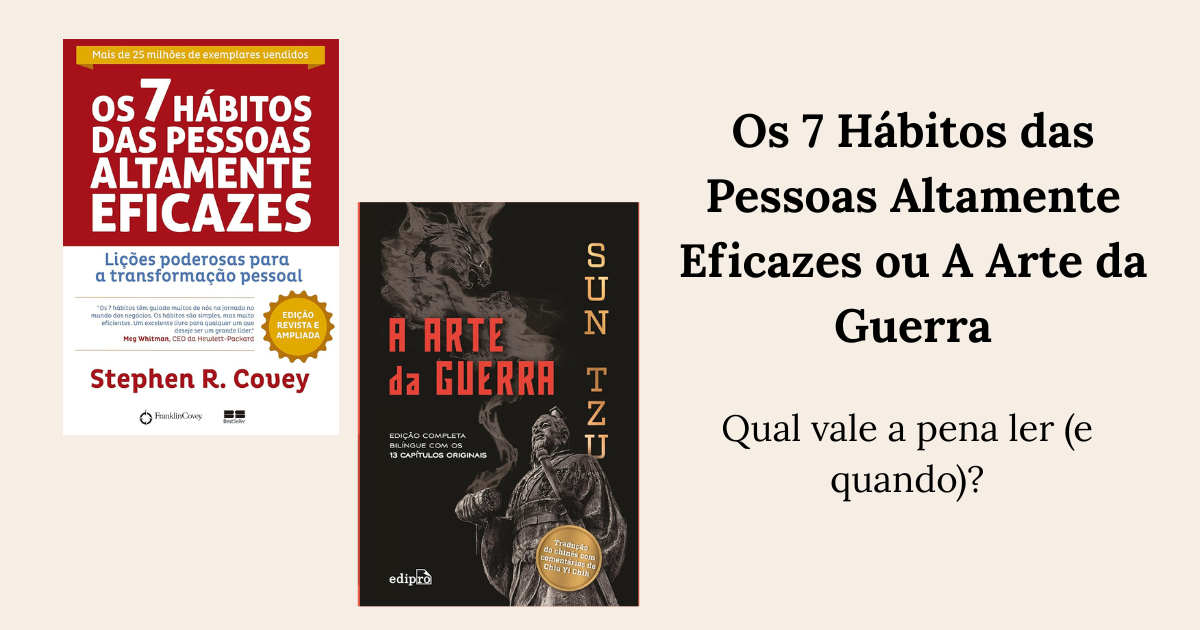 Blog Os 7 Hábitos das Pessoas Altamente Eficazes ou A Arte da Guerra: qual vale a pena ler (e quando)? Leia o artigo »