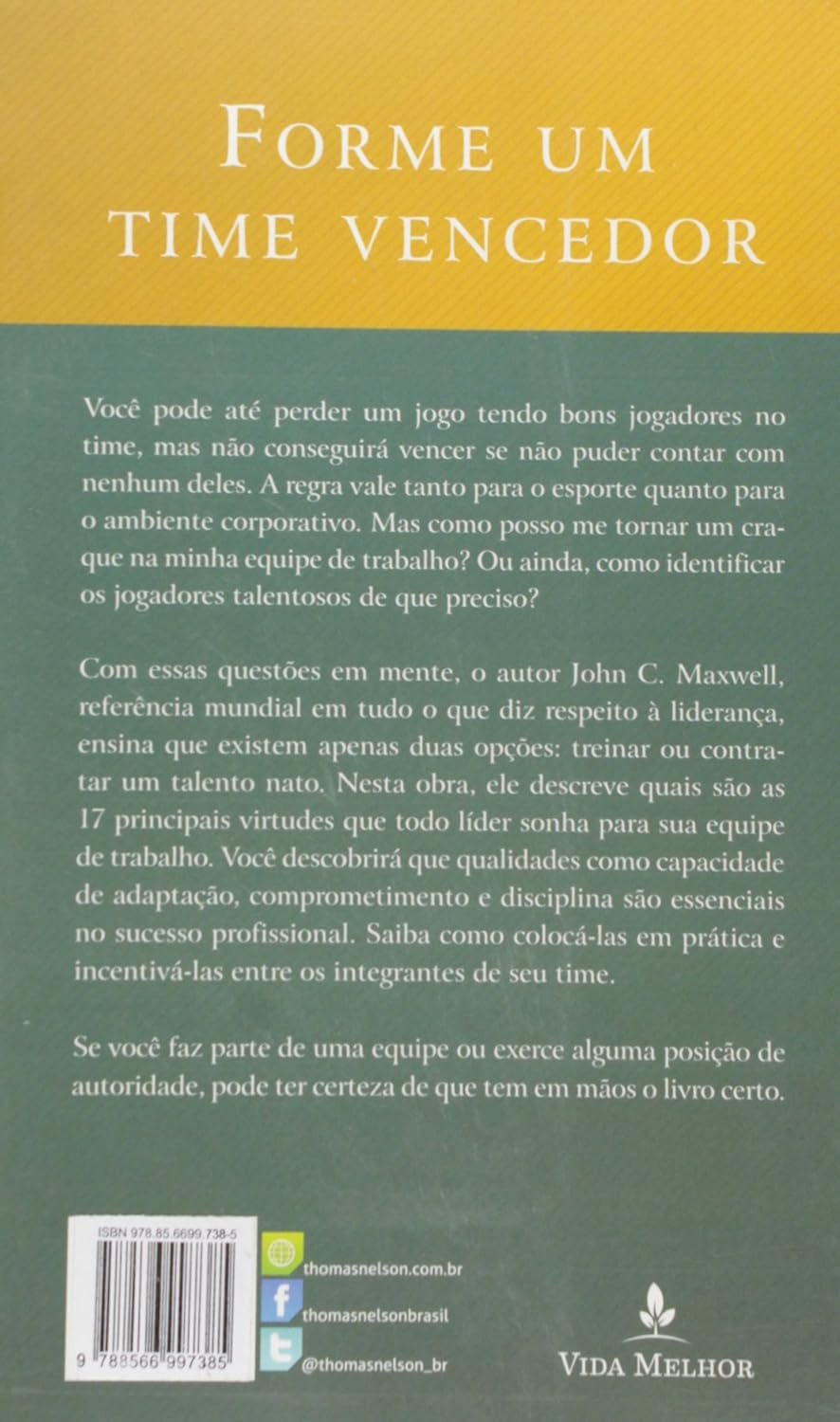 Maxwell mostra que nenhum líder alcança grandes conquistas sozinho, e que uma equipe alinhada, engajada e bem conduzida é capaz de superar obstáculos aparentemente impossíveis. O livro também convida o leitor a refletir sobre seu papel na equipe: será que você está somando ou bloqueando o progresso coletivo?