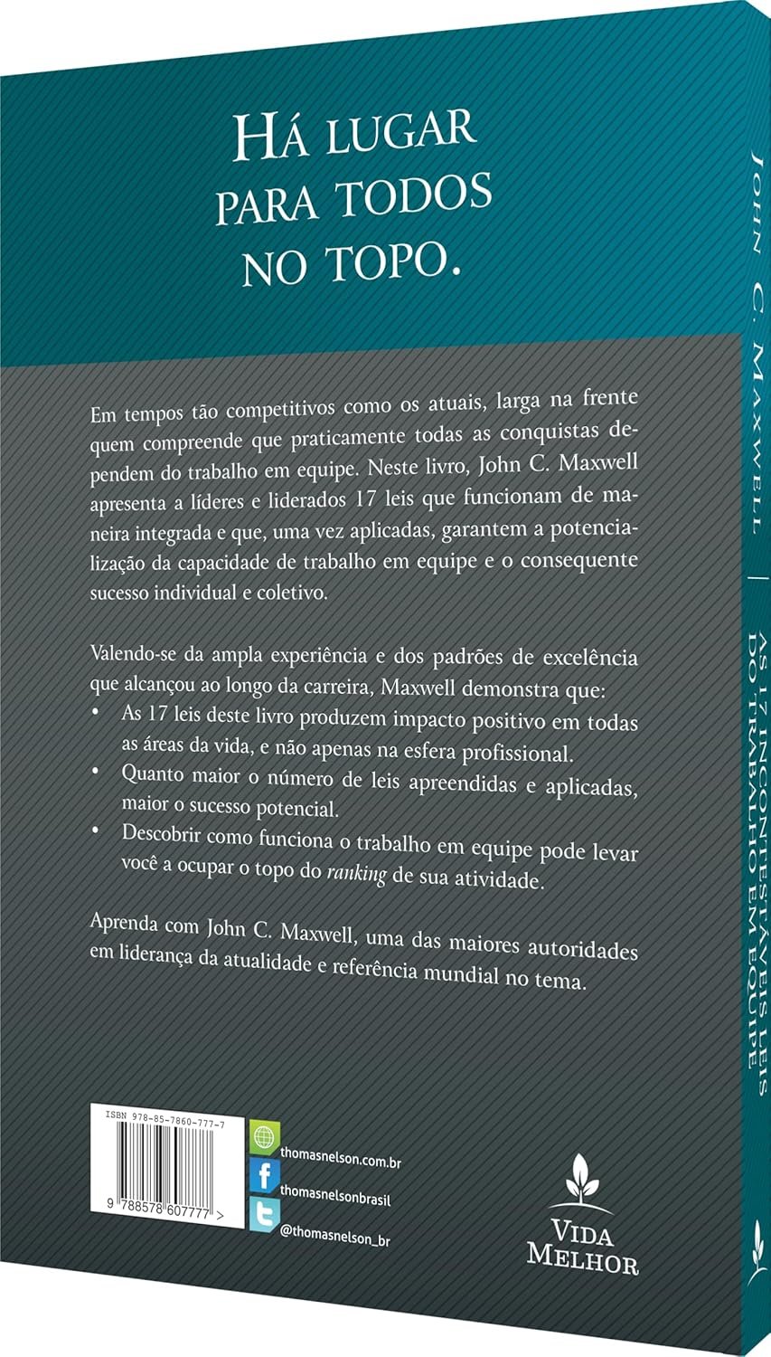 As 17 Incontestáveis Leis do Trabalho em Equipe, de John C. Maxwell, é esse guia que mostra exatamente como construir, fortalecer e manter equipes vencedoras — naquele nível onde o resultado coletivo ultrapassa o que cada indivíduo conseguiria sozinho.