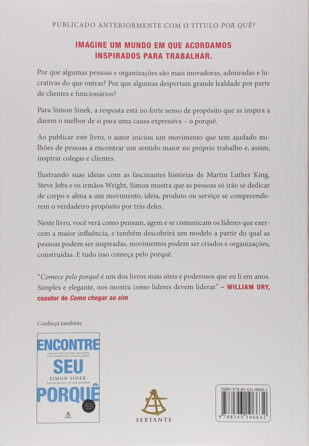 Simon Sinek apresenta, em Comece pelo Porquê, uma abordagem revolucionária para liderança: comunicar antes o propósito (porquê), seguido do como e do quê. Isso cria culturas fortes, promove engajamento e forma seguidores leais. A obra explora histórias icônicas e demonstra como líderes de verdade inspiram ação e constroem legados. Uma leitura essencial para quem deseja liderar com propósito e autenticidade.