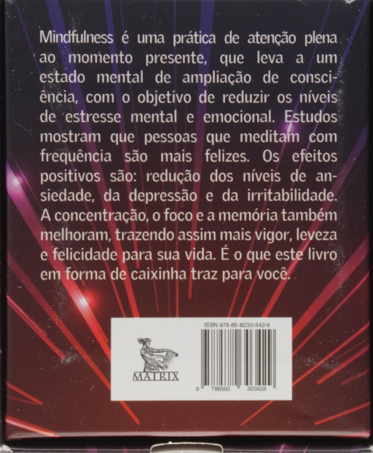 Em “Mindfulness: 100 Cartas com Exercícios para a Atenção Plena e Redução de Estresse”, a especialista em psicologia e mindfulness Corinne Sweet oferece uma das formas mais práticas e acessíveis de cultivar a presença e o equilíbrio emocional no dia a dia. Este conjunto de cartas funciona como um kit de bem-estar mental: cada carta traz um exercício, reflexão ou técnica simples que ajuda a desacelerar a mente, aliviar a tensão e reencontrar a paz interior.